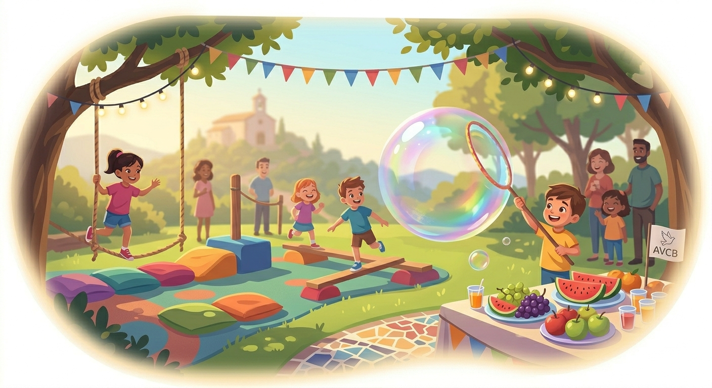 🫧 Jocs d'aigua: Una gran festa d'estiu amb bombolles de sabó gegants, aspersors i inflables.